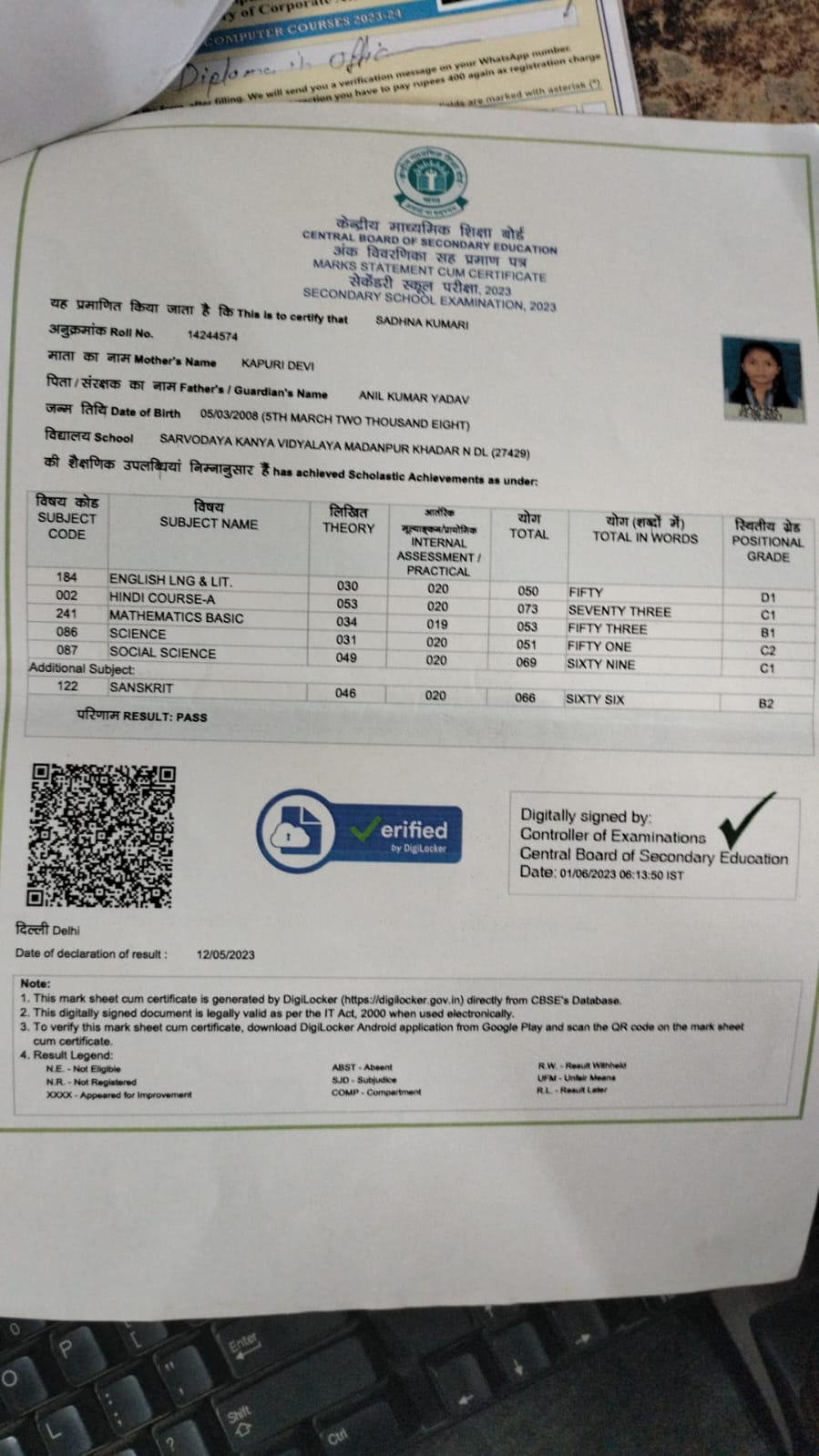 | Exam | Full Marks | Pass Marks | Marks Obtained |