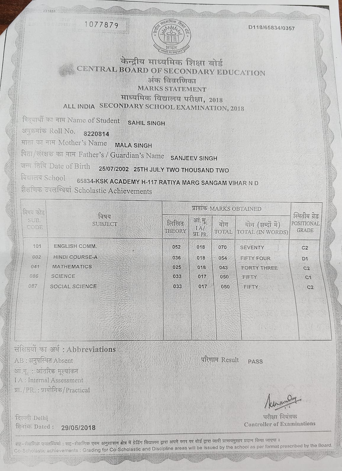 | Exam | Full Marks | Pass Marks | Marks Obtained |