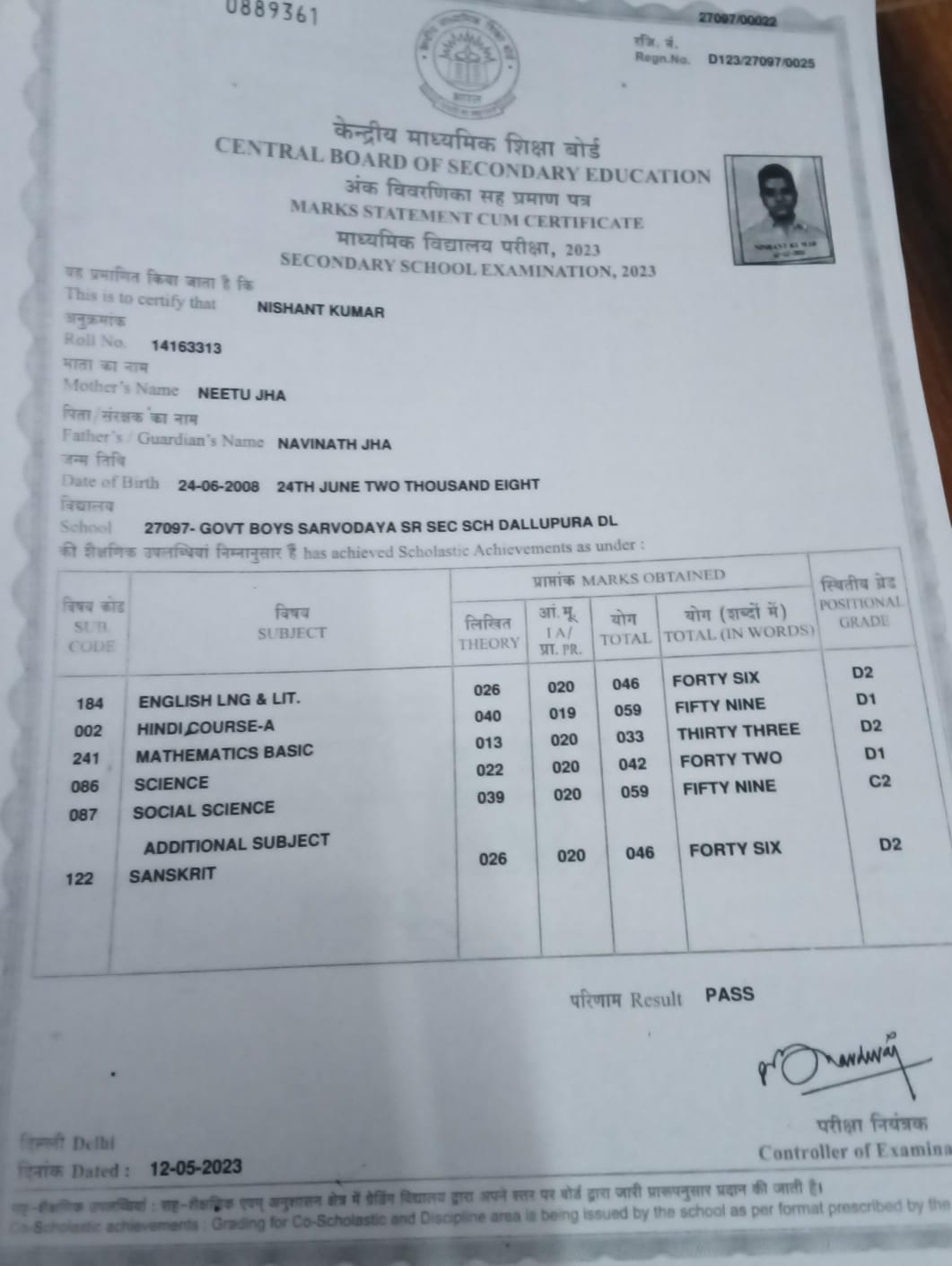 | Exam | Full Marks | Pass Marks | Marks Obtained |