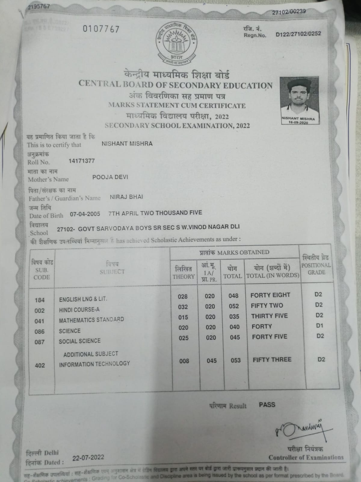 | Exam | Full Marks | Pass Marks | Marks Obtained |