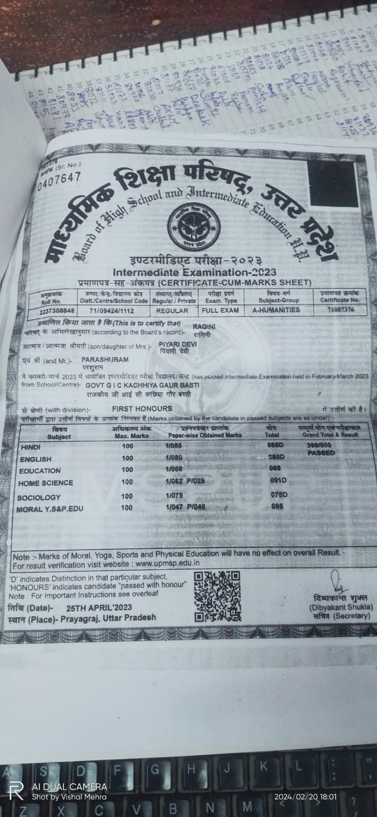 | Exam | Full Marks | Pass Marks | Marks Obtained |
