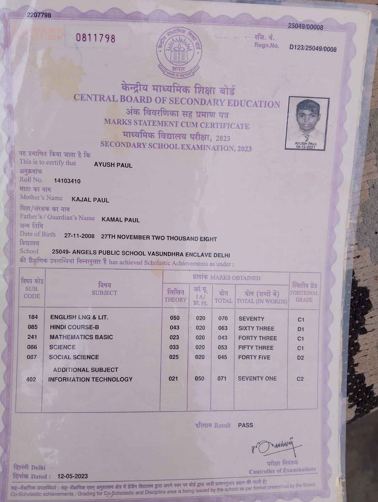 | Exam | Full Marks | Pass Marks | Marks Obtained |