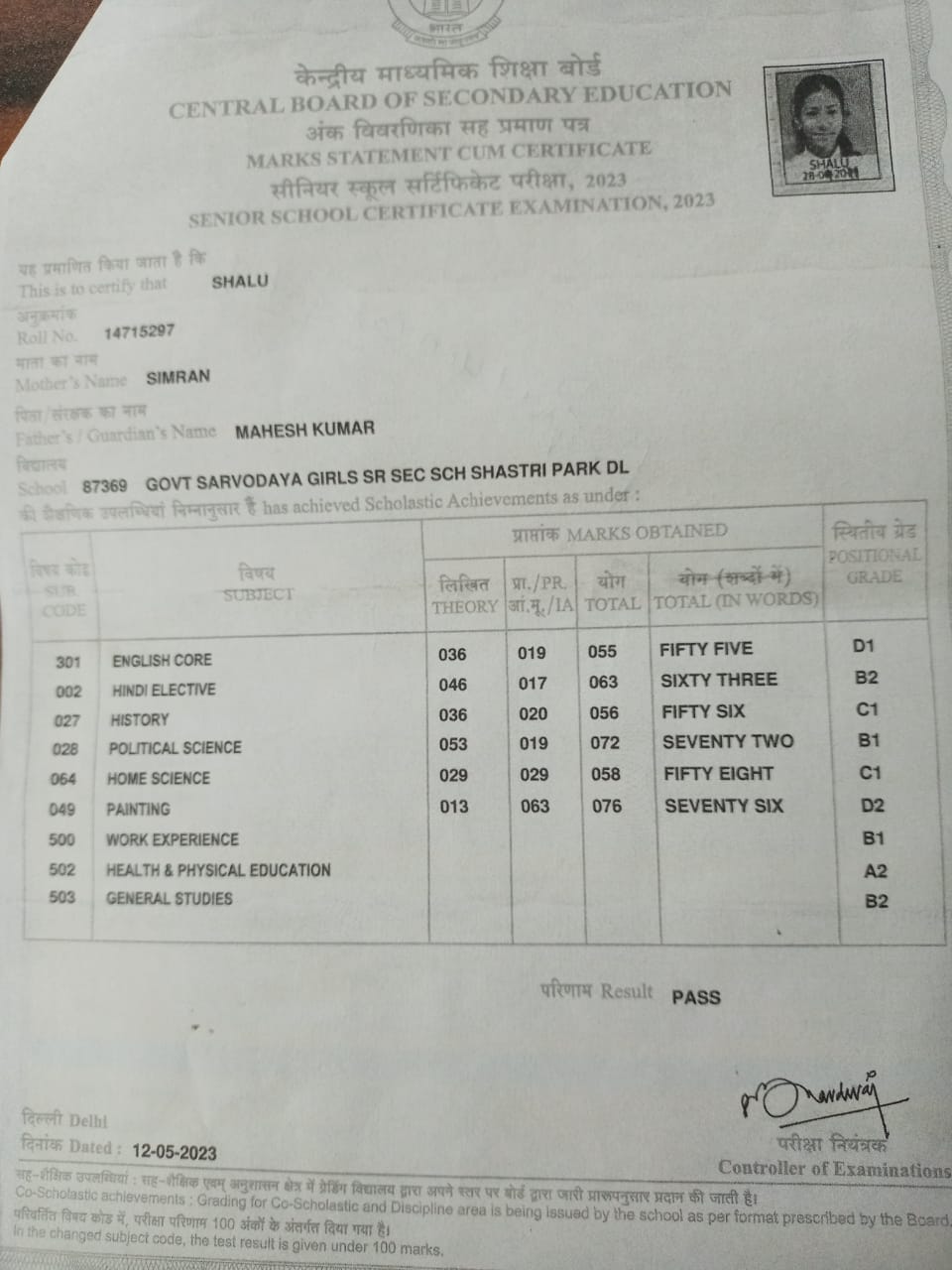 | Exam | Full Marks | Pass Marks | Marks Obtained |