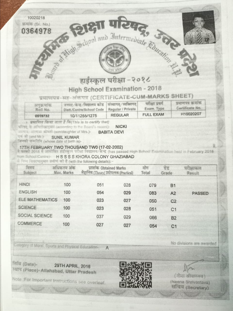 | Exam | Full Marks | Pass Marks | Marks Obtained |