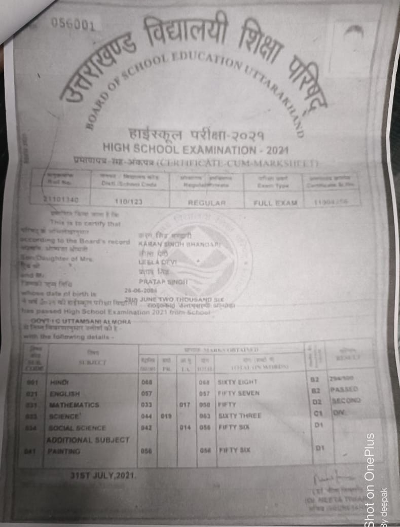 | Exam | Full Marks | Pass Marks | Marks Obtained |
