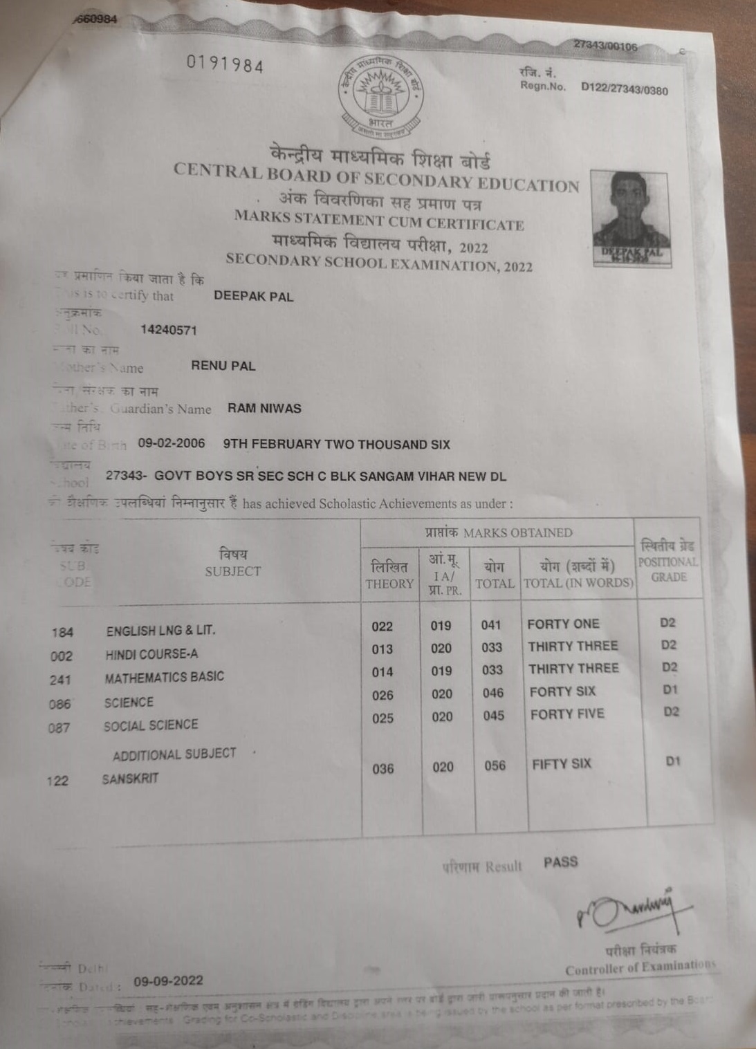 | Exam | Full Marks | Pass Marks | Marks Obtained |