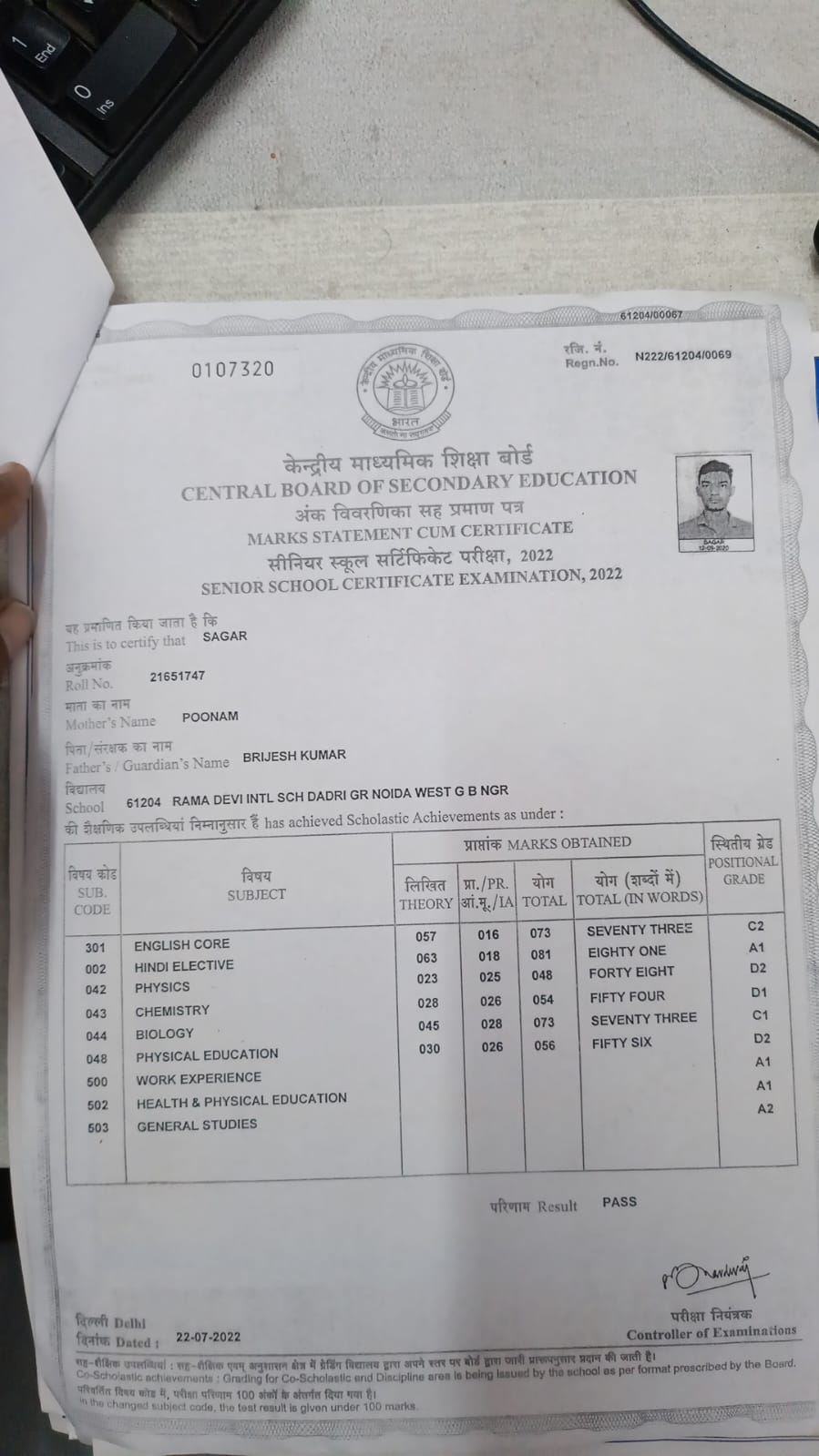 | Exam | Full Marks | Pass Marks | Marks Obtained |