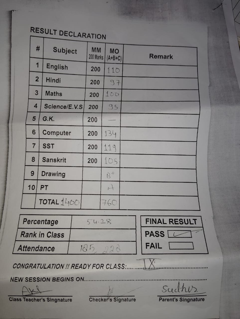 | Exam | Full Marks | Pass Marks | Marks Obtained |