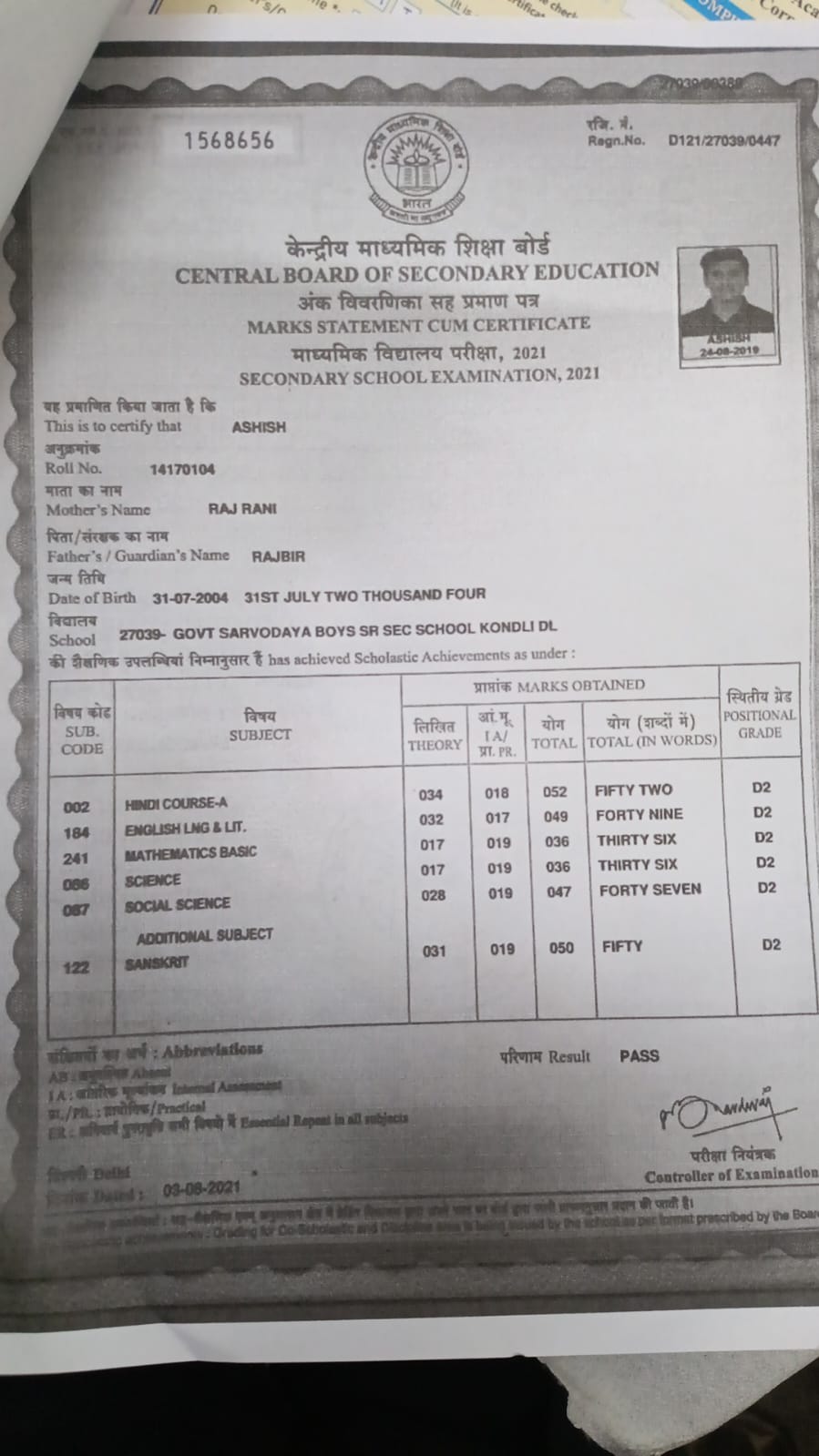 | Exam | Full Marks | Pass Marks | Marks Obtained |