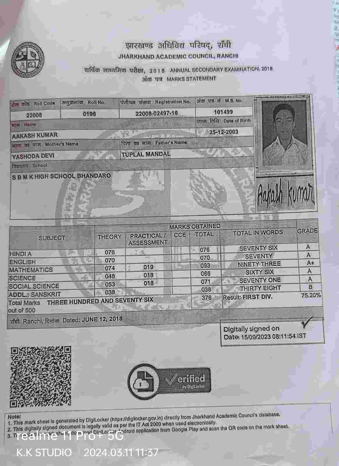 | Exam | Full Marks | Pass Marks | Marks Obtained |