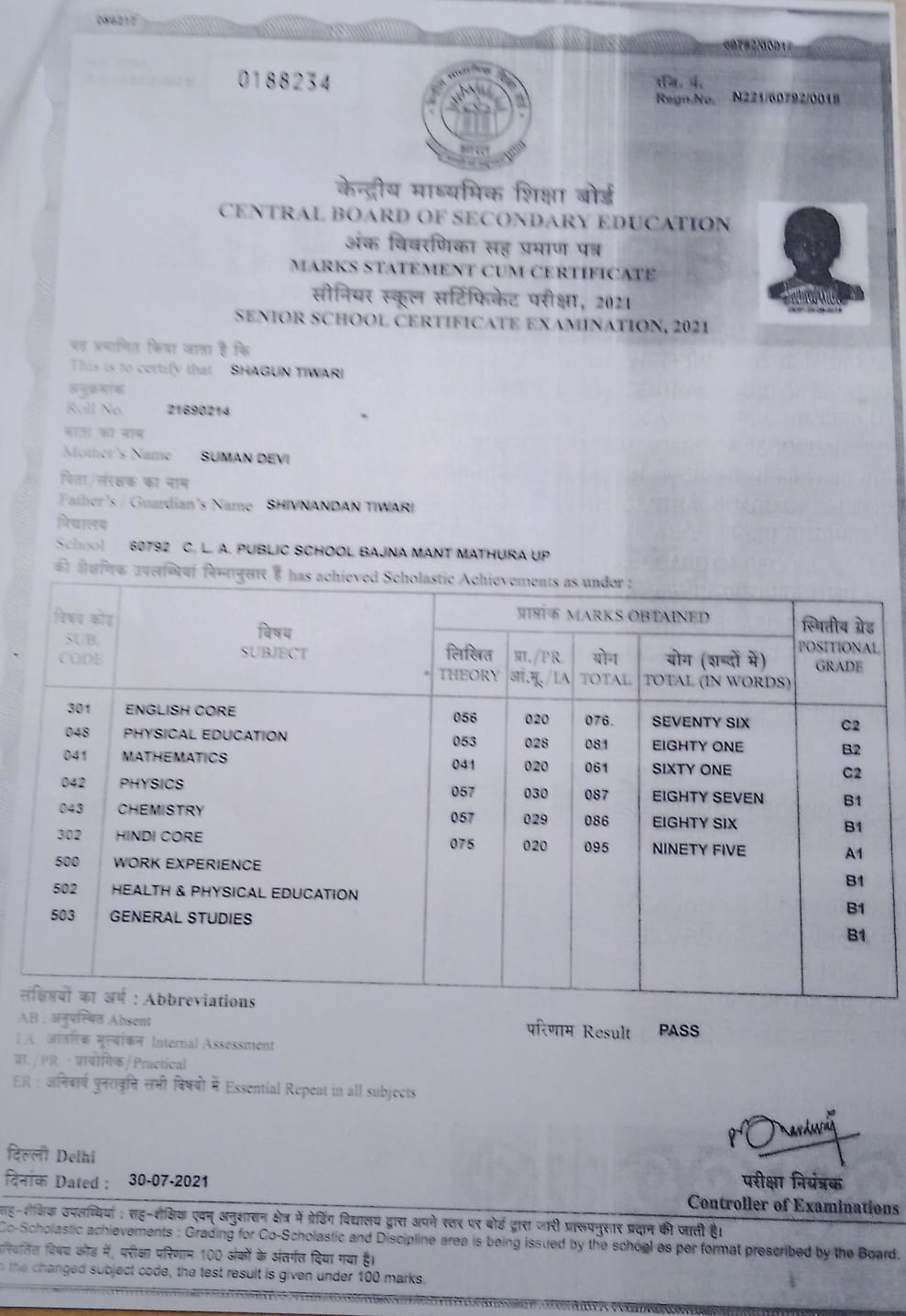 | Exam | Full Marks | Pass Marks | Marks Obtained |