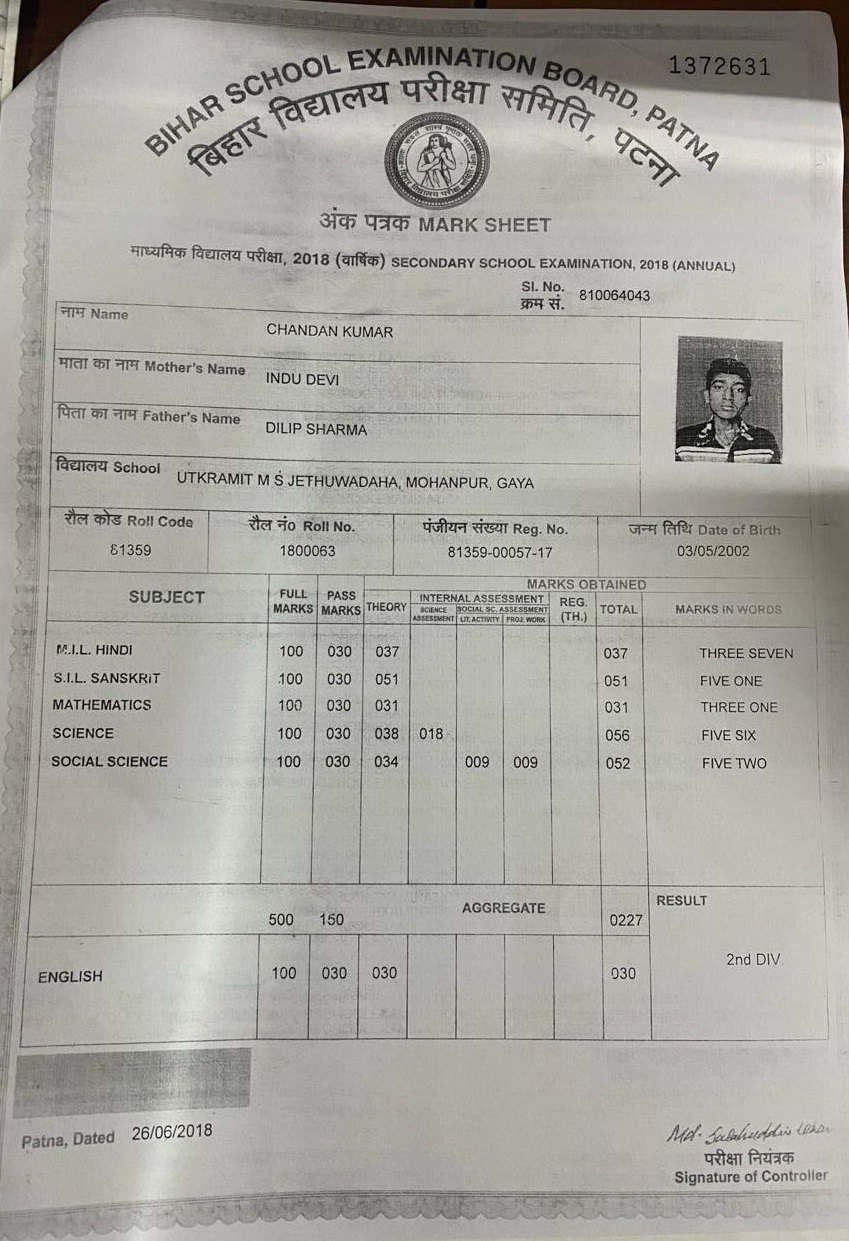 | Exam | Full Marks | Pass Marks | Marks Obtained |