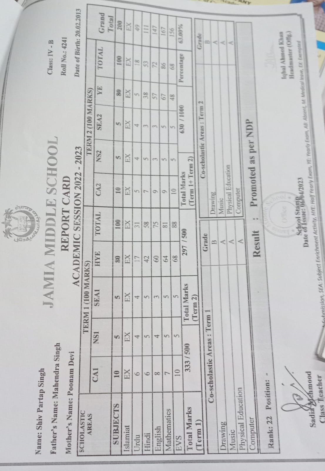 | Exam | Full Marks | Pass Marks | Marks Obtained |
