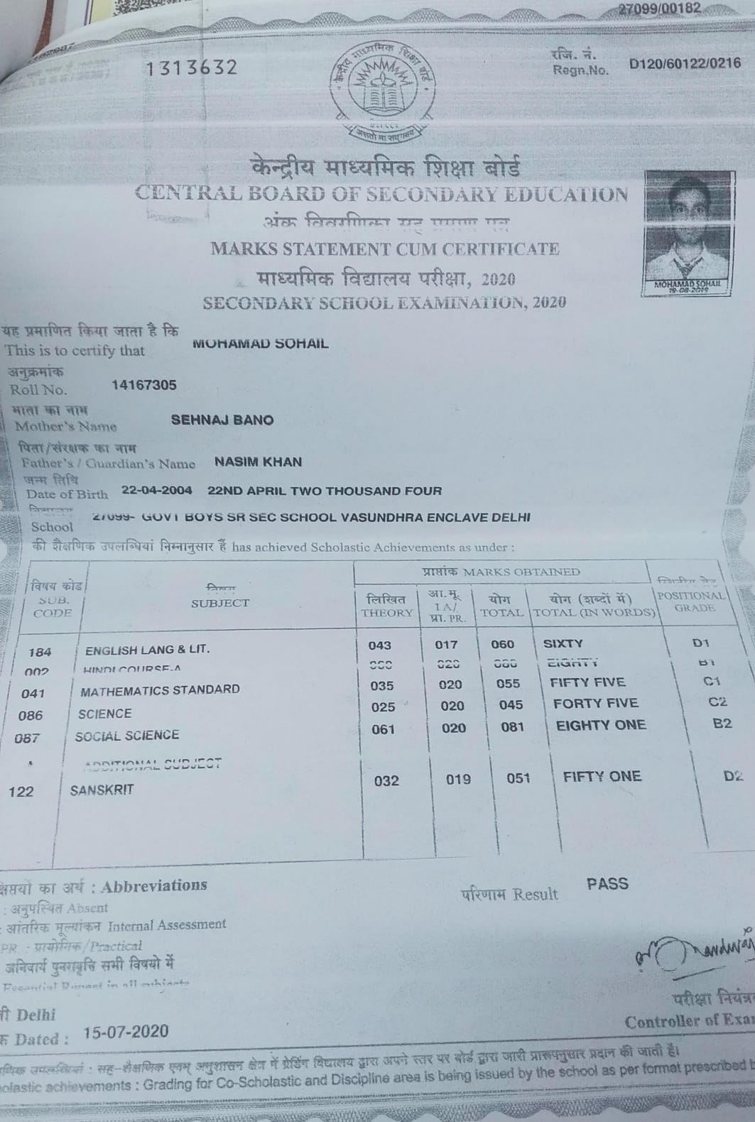 | Exam | Full Marks | Pass Marks | Marks Obtained |