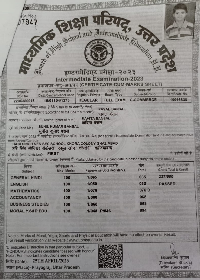 | Exam | Full Marks | Pass Marks | Marks Obtained |