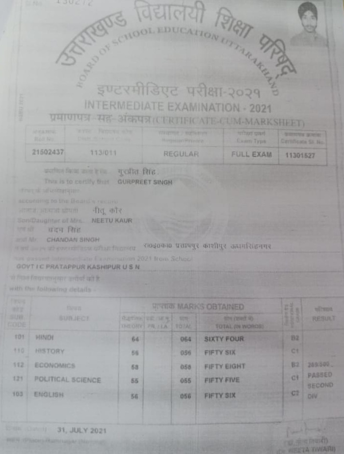 | Exam | Full Marks | Pass Marks | Marks Obtained |