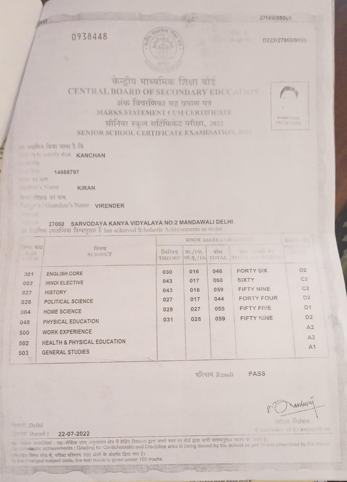 | Exam | Full Marks | Pass Marks | Marks Obtained |