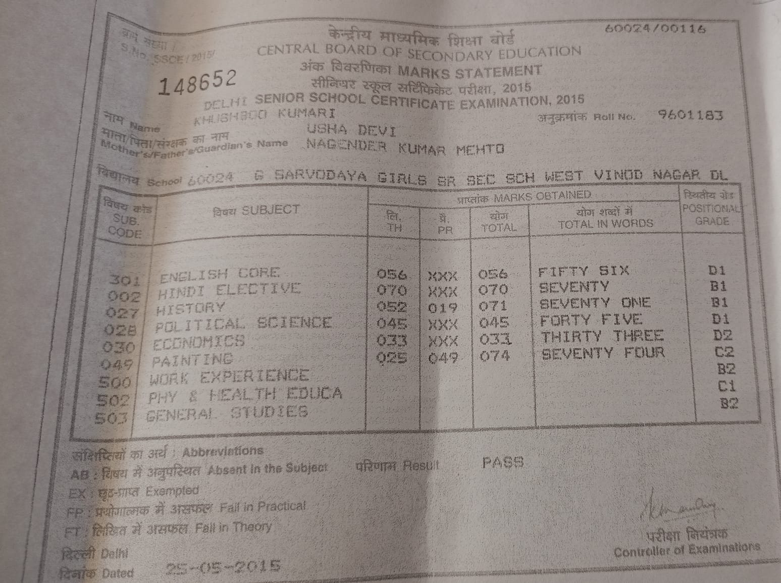 | Exam | Full Marks | Pass Marks | Marks Obtained |