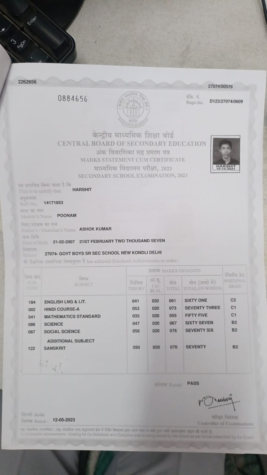 | Exam | Full Marks | Pass Marks | Marks Obtained |