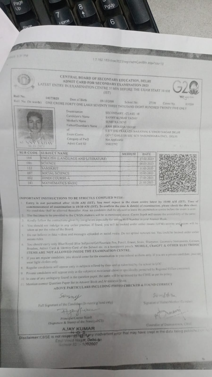 | Exam | Full Marks | Pass Marks | Marks Obtained |