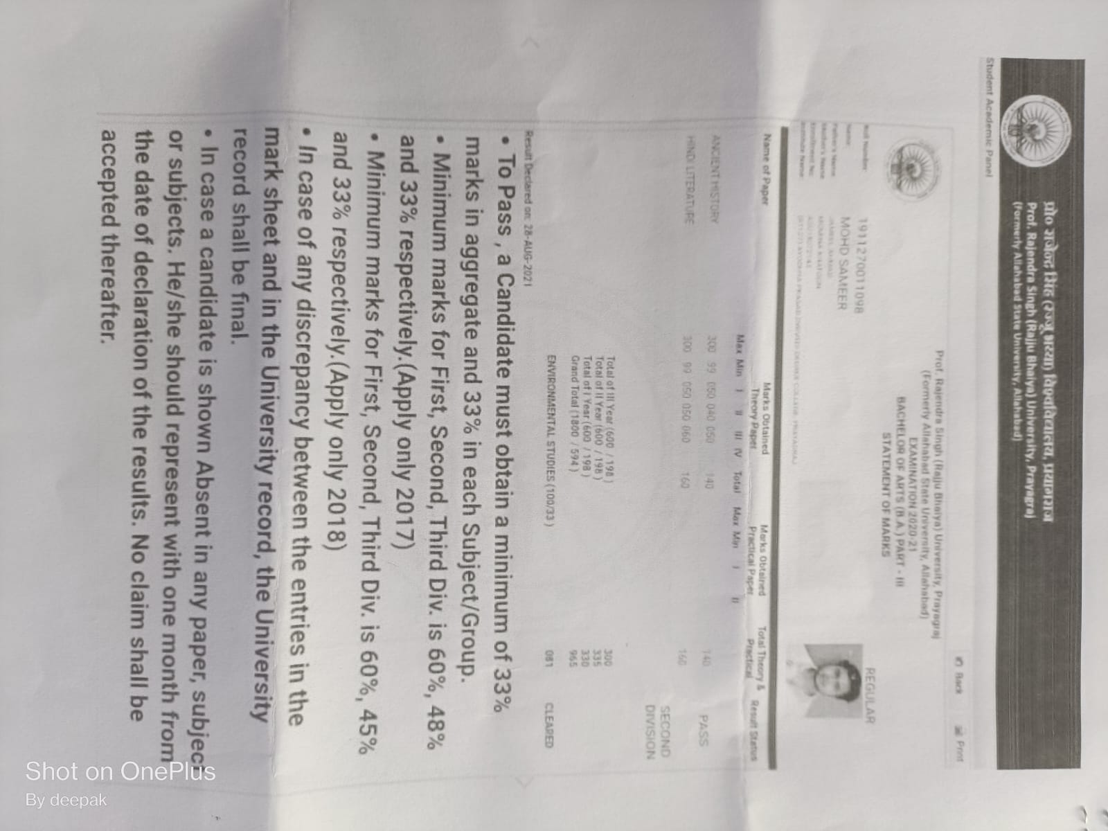 | Exam | Full Marks | Pass Marks | Marks Obtained |