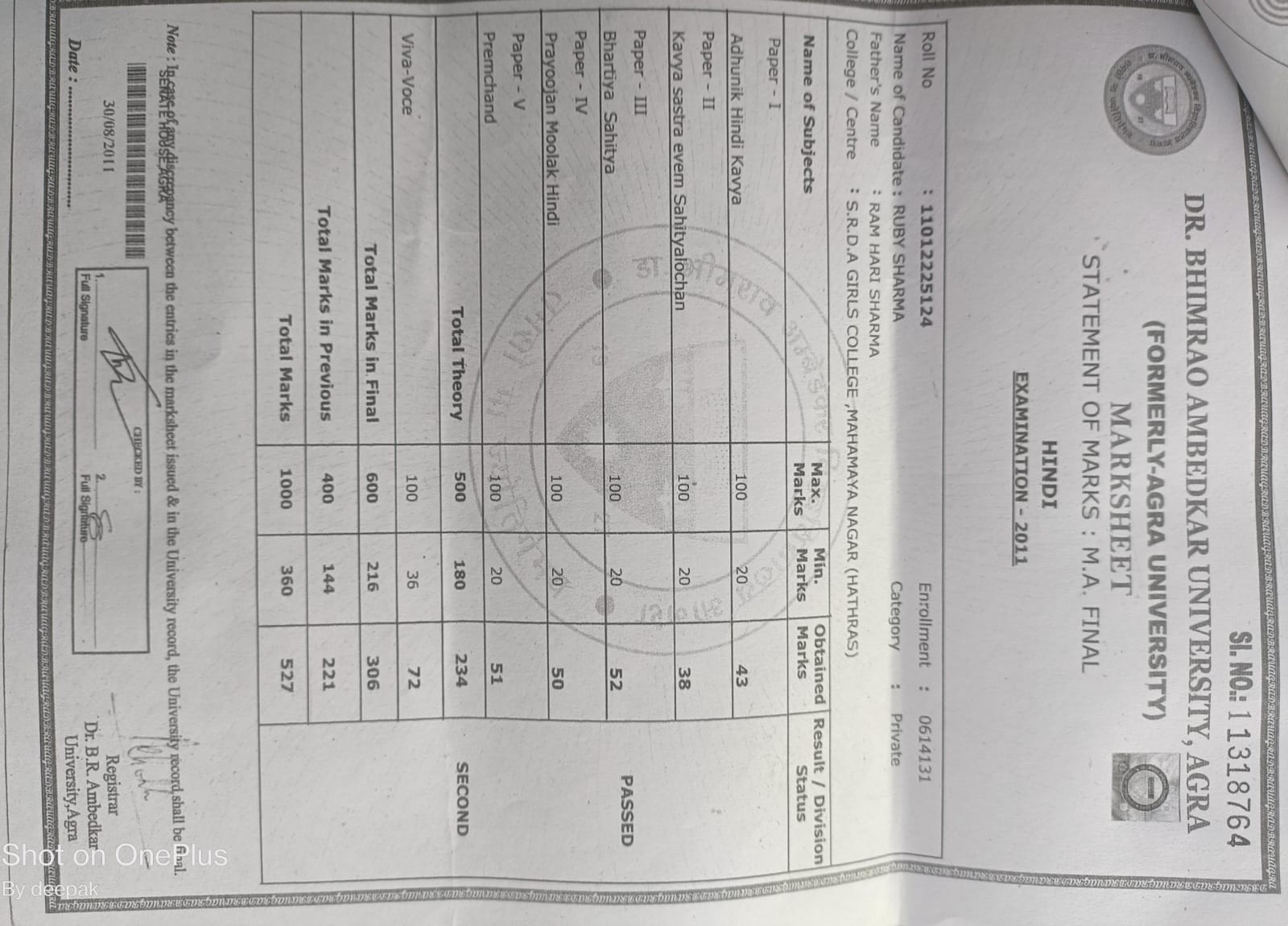 | Exam | Full Marks | Pass Marks | Marks Obtained |