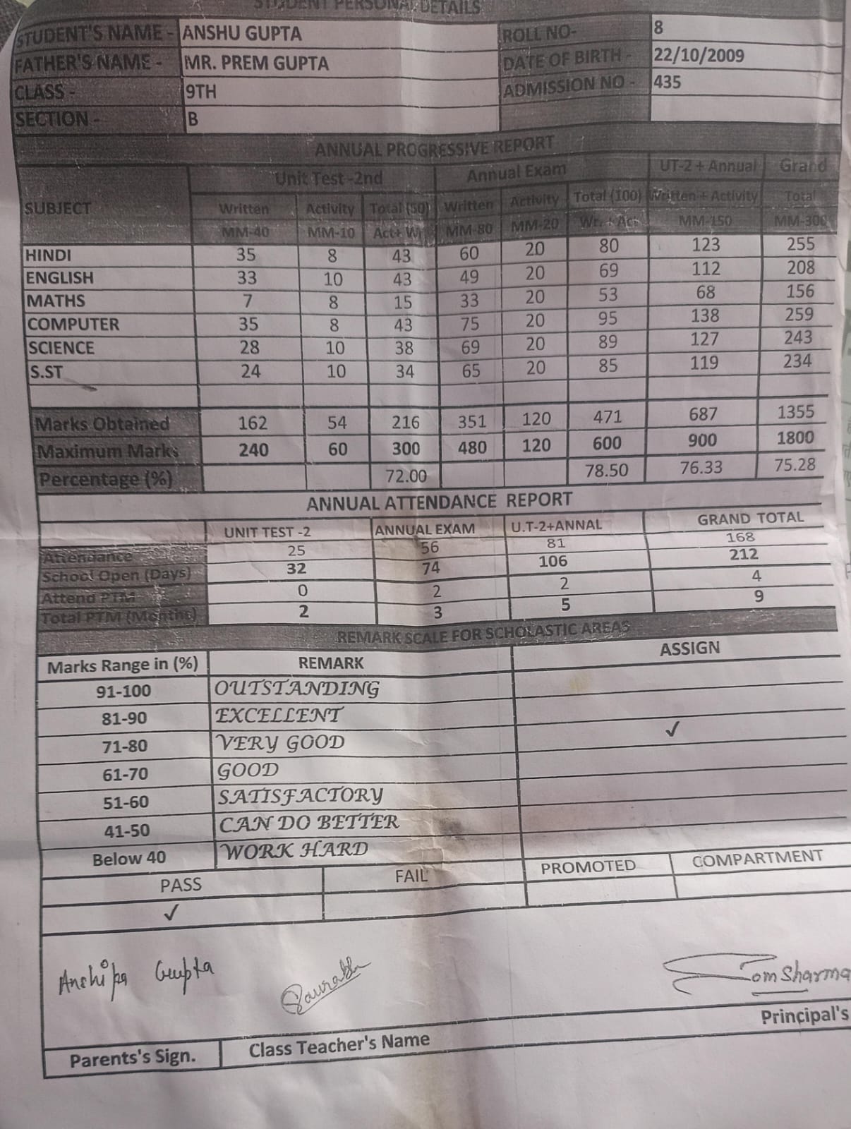 | Exam | Full Marks | Pass Marks | Marks Obtained |
