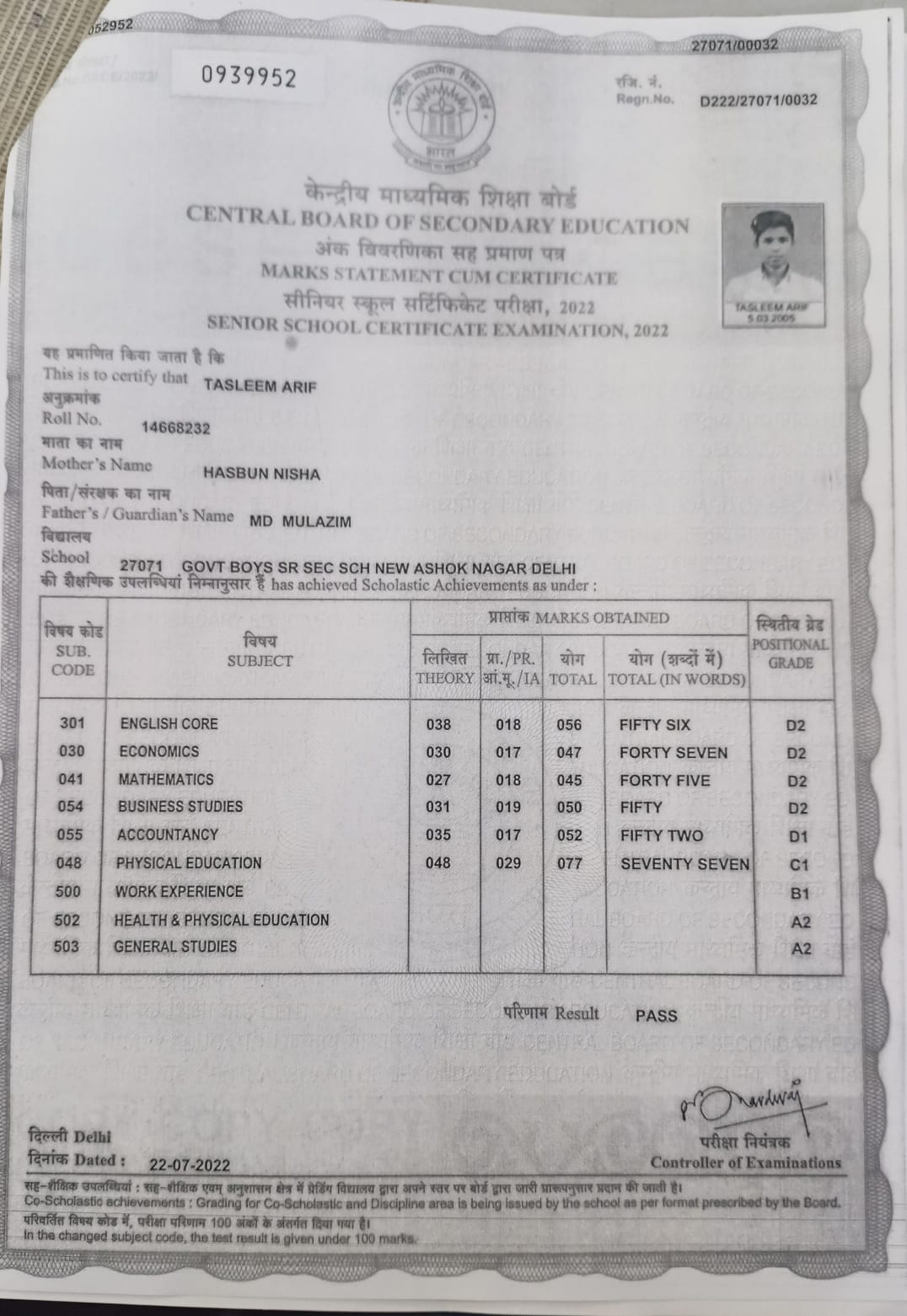 | Exam | Full Marks | Pass Marks | Marks Obtained |