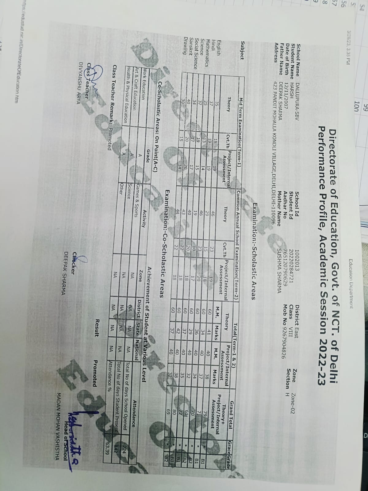 | Exam | Full Marks | Pass Marks | Marks Obtained |