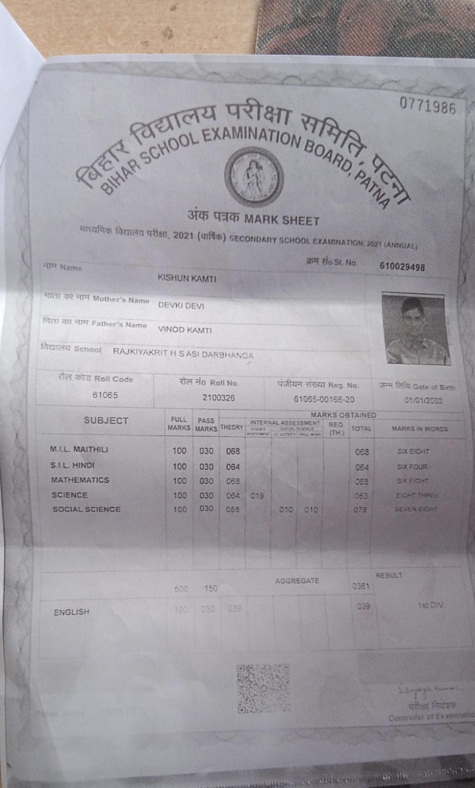 | Exam | Full Marks | Pass Marks | Marks Obtained |