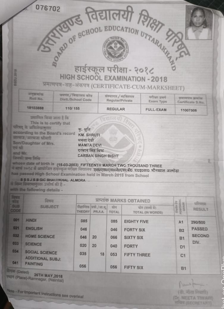 | Exam | Full Marks | Pass Marks | Marks Obtained |