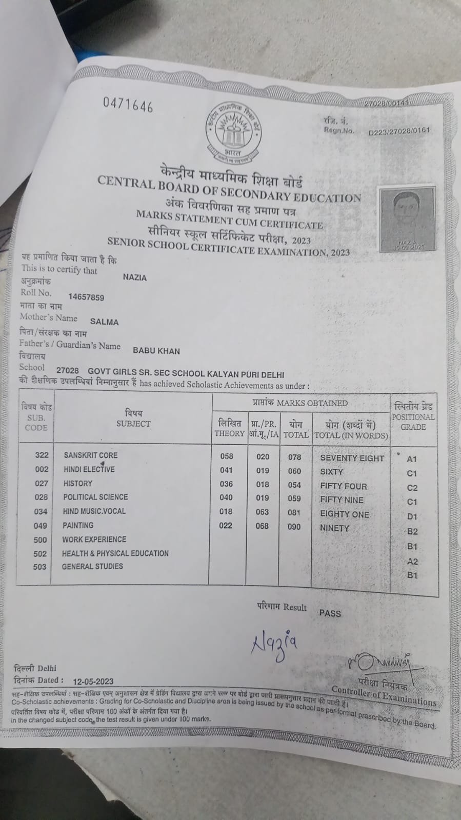 | Exam | Full Marks | Pass Marks | Marks Obtained |