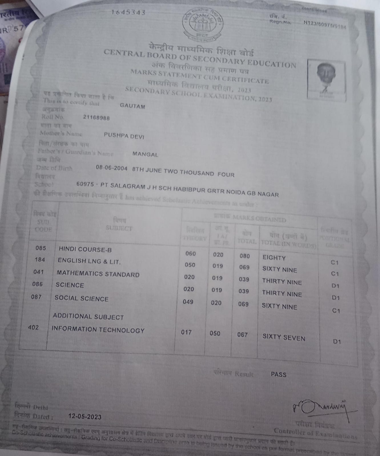 | Exam | Full Marks | Pass Marks | Marks Obtained |