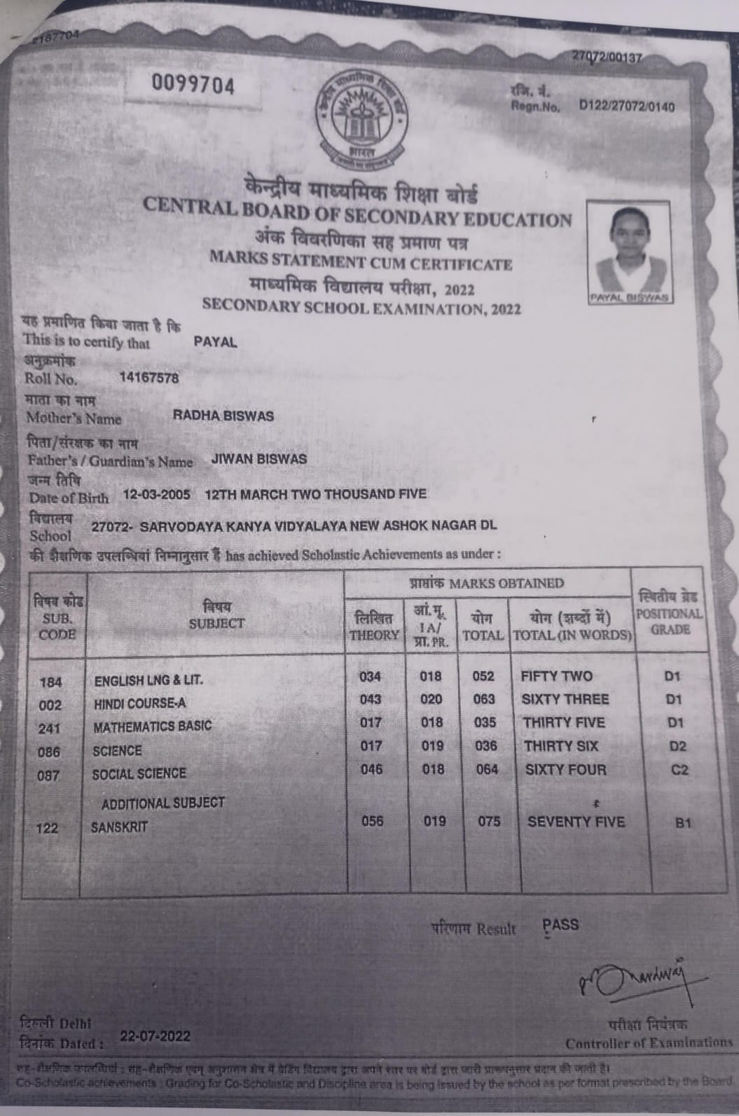 | Exam | Full Marks | Pass Marks | Marks Obtained |