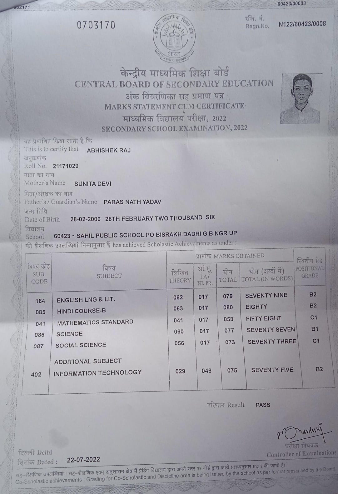 | Exam | Full Marks | Pass Marks | Marks Obtained |