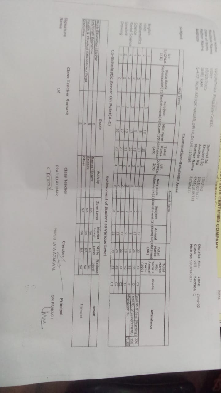 | Exam | Full Marks | Pass Marks | Marks Obtained |