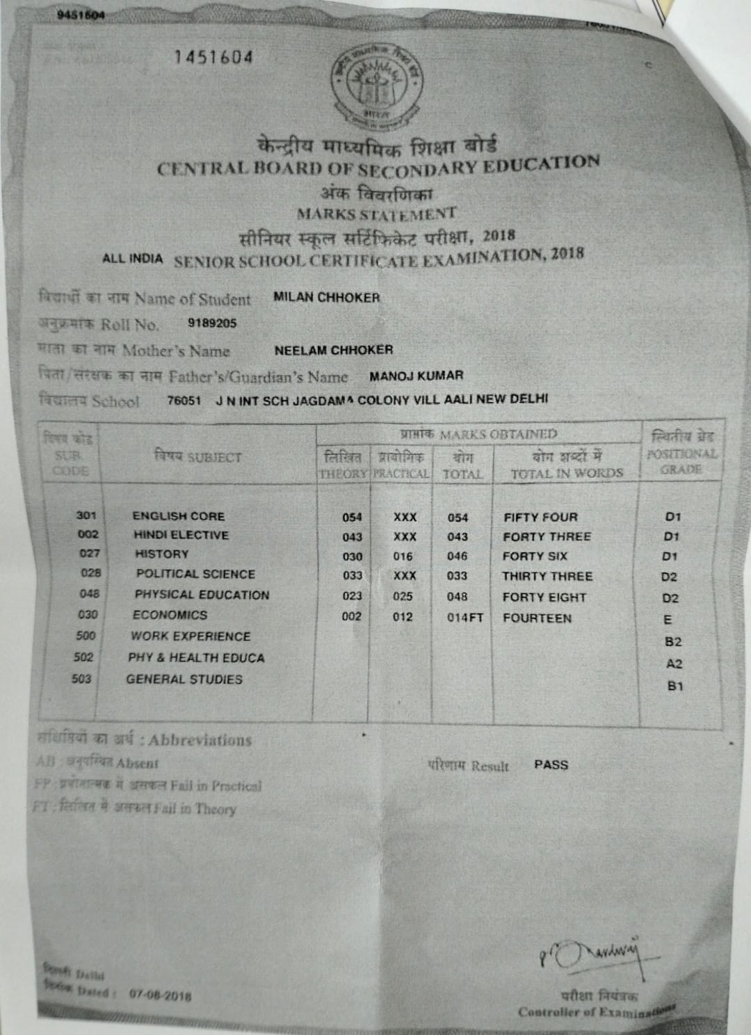 | Exam | Full Marks | Pass Marks | Marks Obtained |