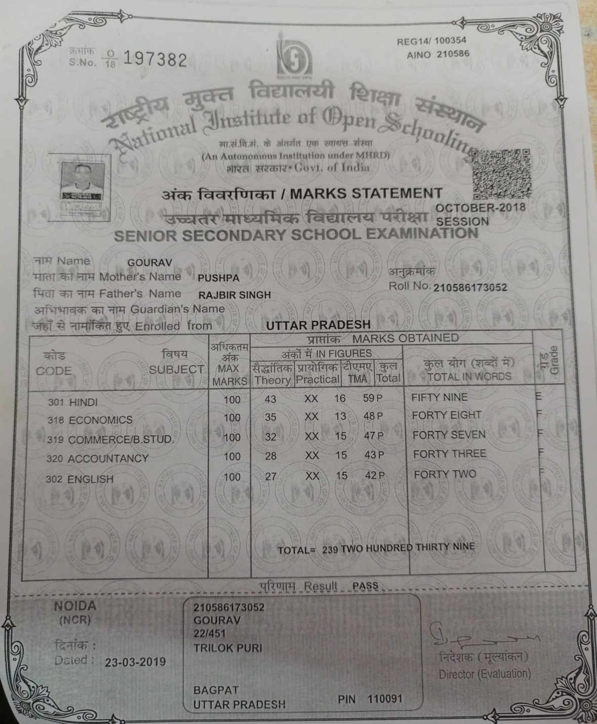 | : | 12/469, Kalyan Puri, Delhi-91, East Delhi | |