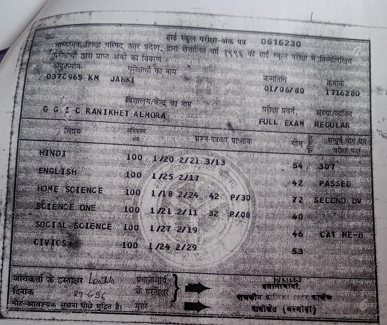 | Exam | Full Marks | Pass Marks | Marks Obtained |