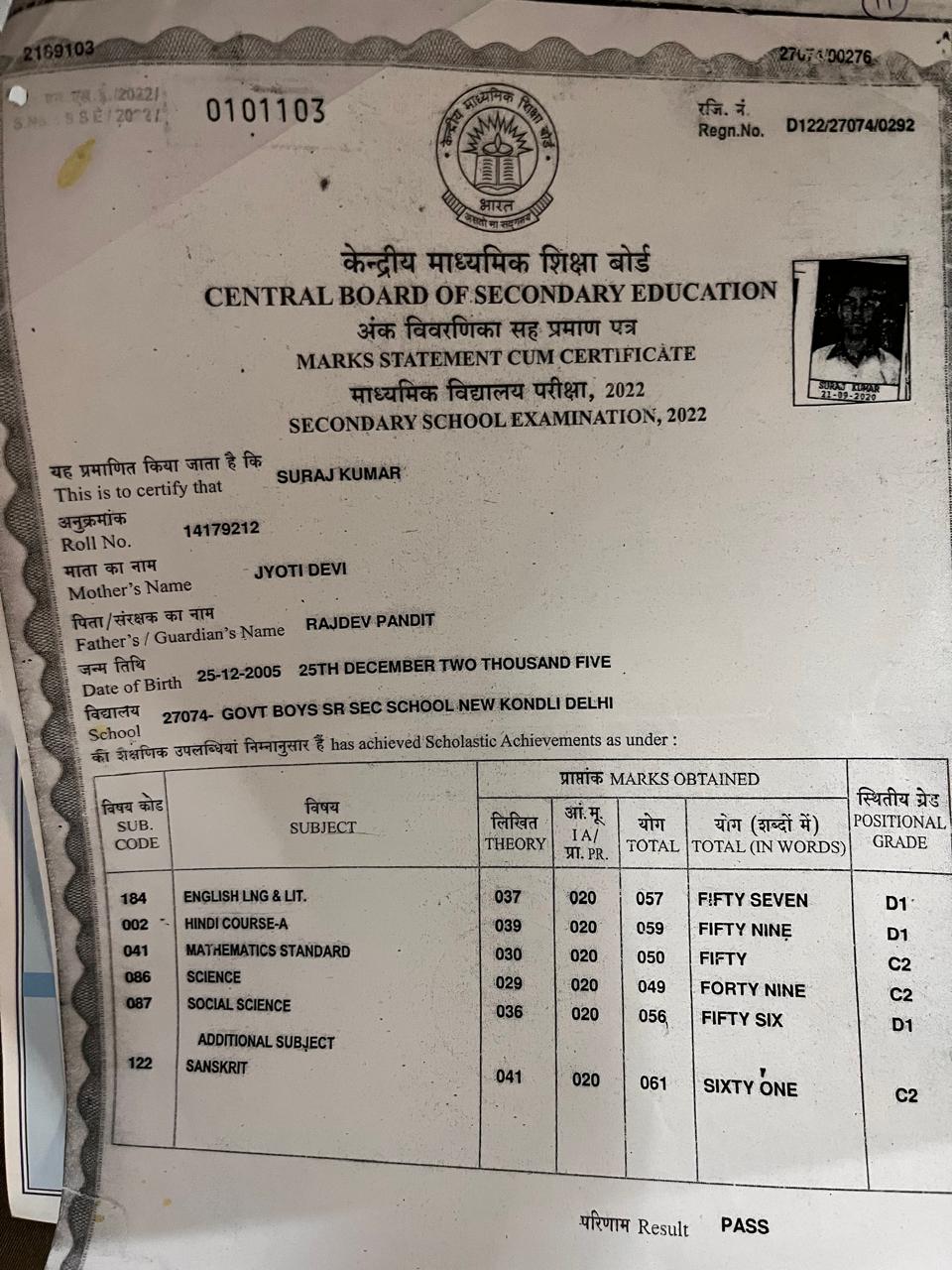 | Exam | Full Marks | Pass Marks | Marks Obtained |