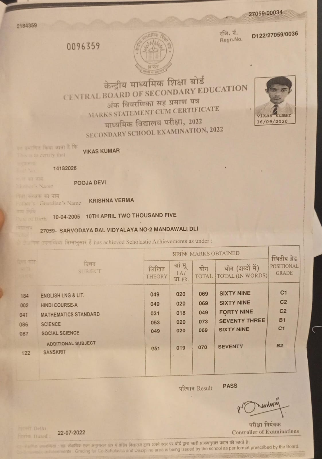 | Exam | Full Marks | Pass Marks | Marks Obtained |