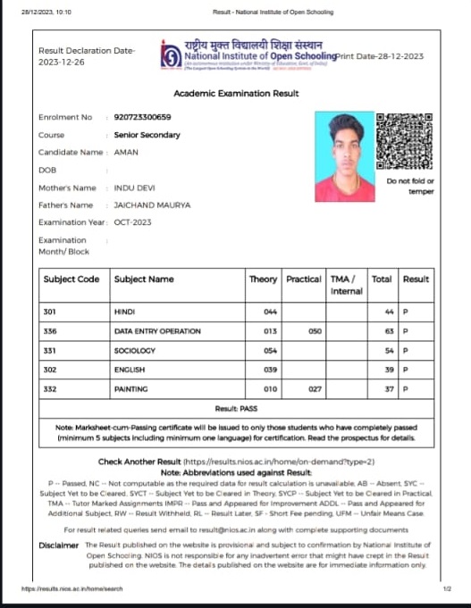 | Exam | Full Marks | Pass Marks | Marks Obtained |