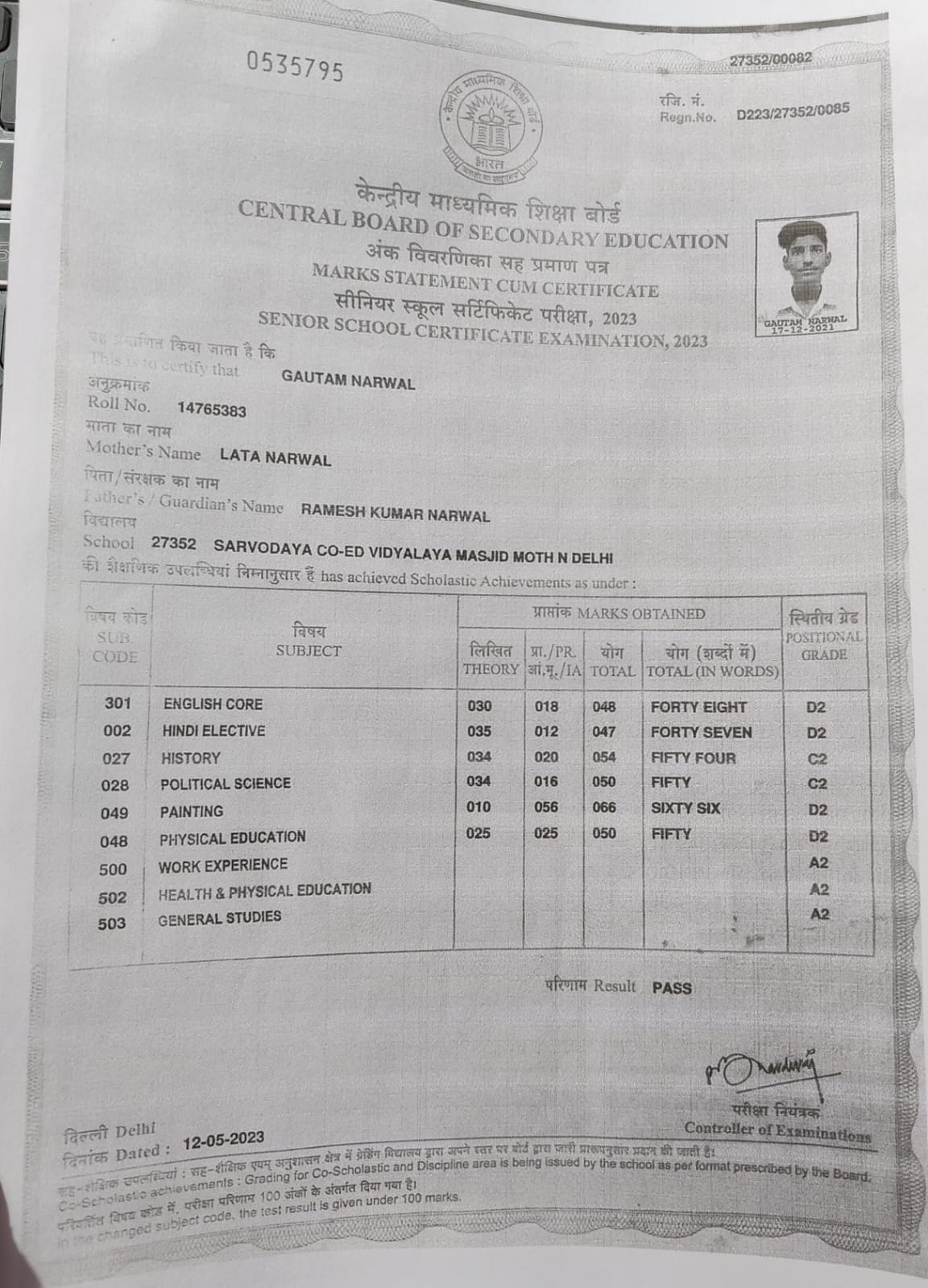 | Exam | Full Marks | Pass Marks | Marks Obtained |