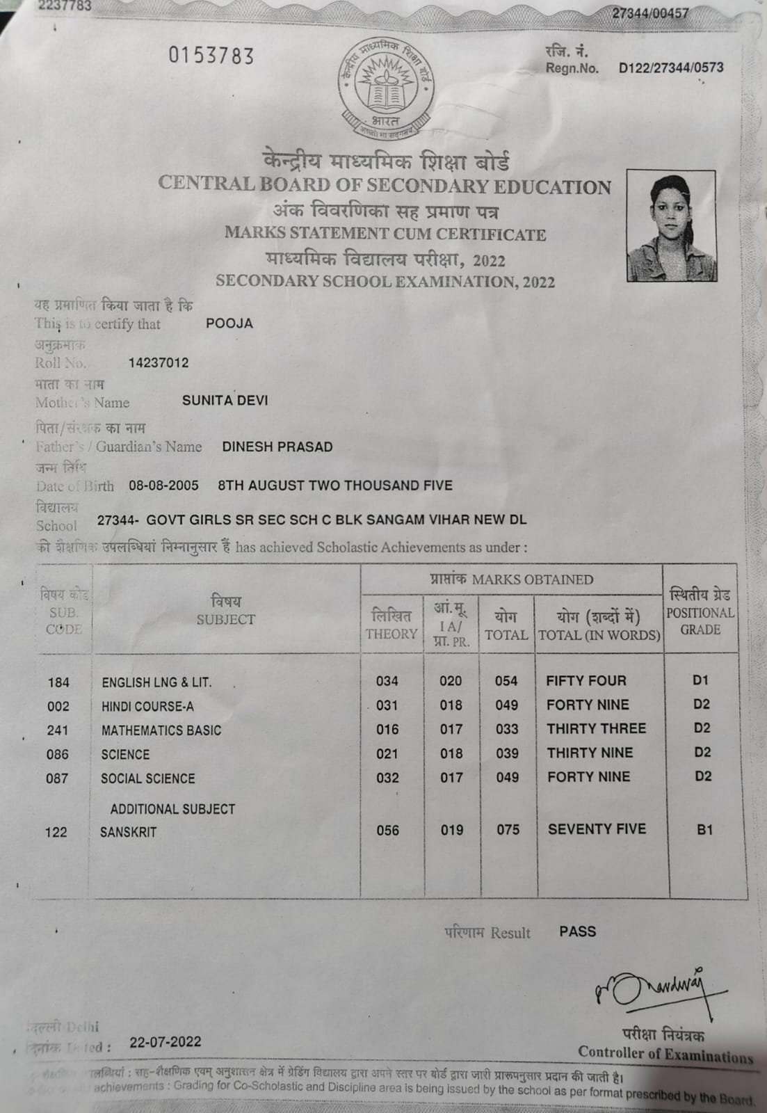 | Exam | Full Marks | Pass Marks | Marks Obtained |
