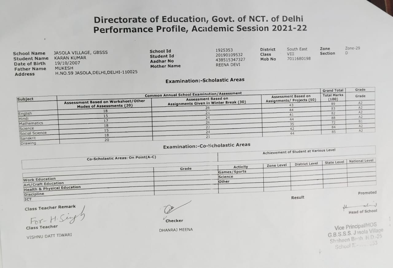 | Exam | Full Marks | Pass Marks | Marks Obtained |