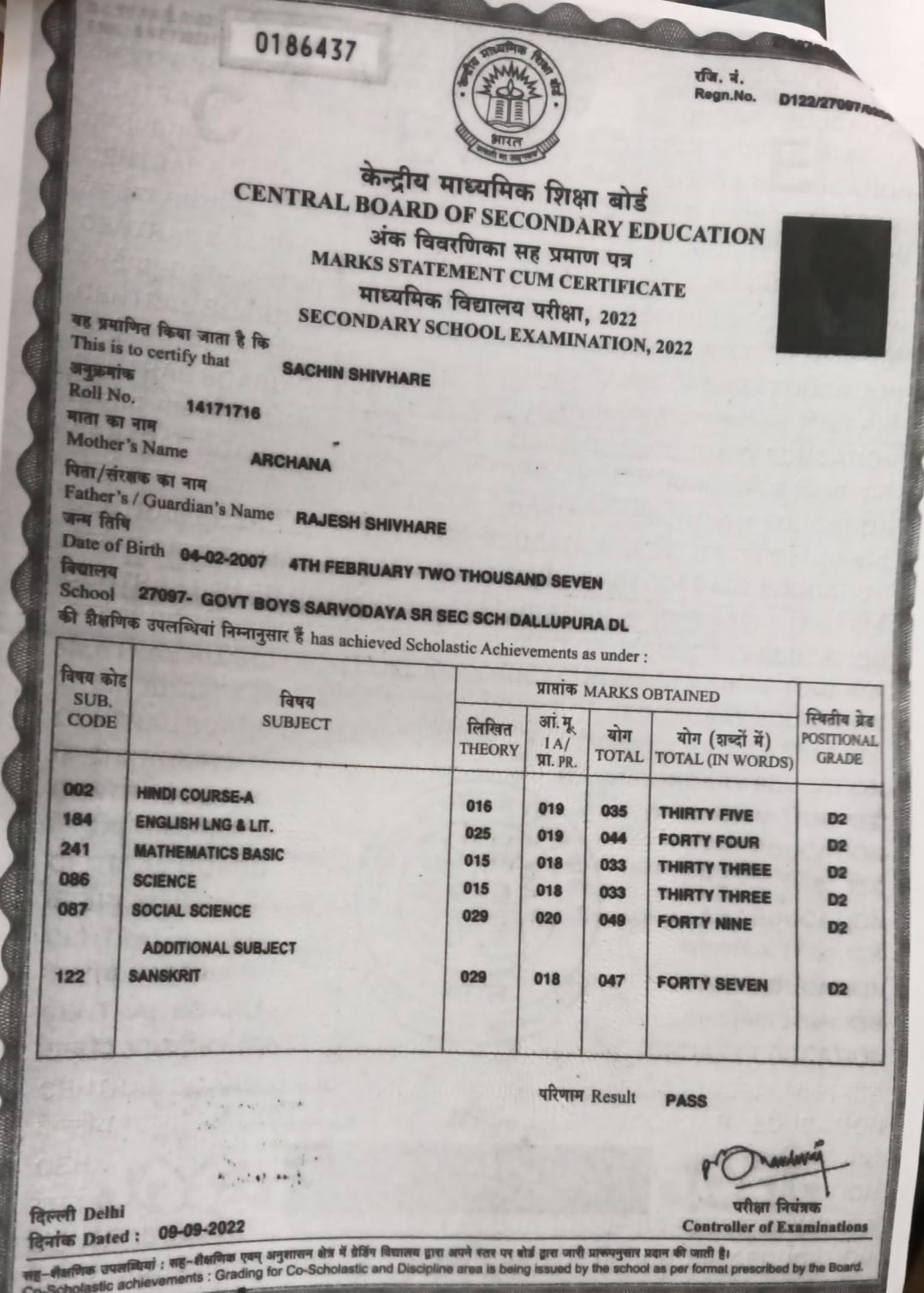 | Exam | Full Marks | Pass Marks | Marks Obtained |