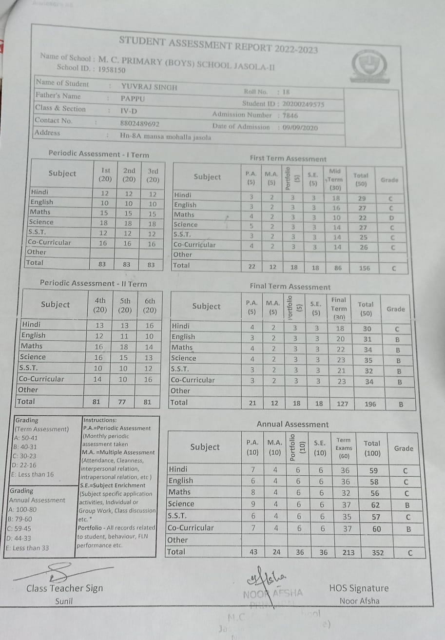 | Exam | Full Marks | Pass Marks | Marks Obtained |
