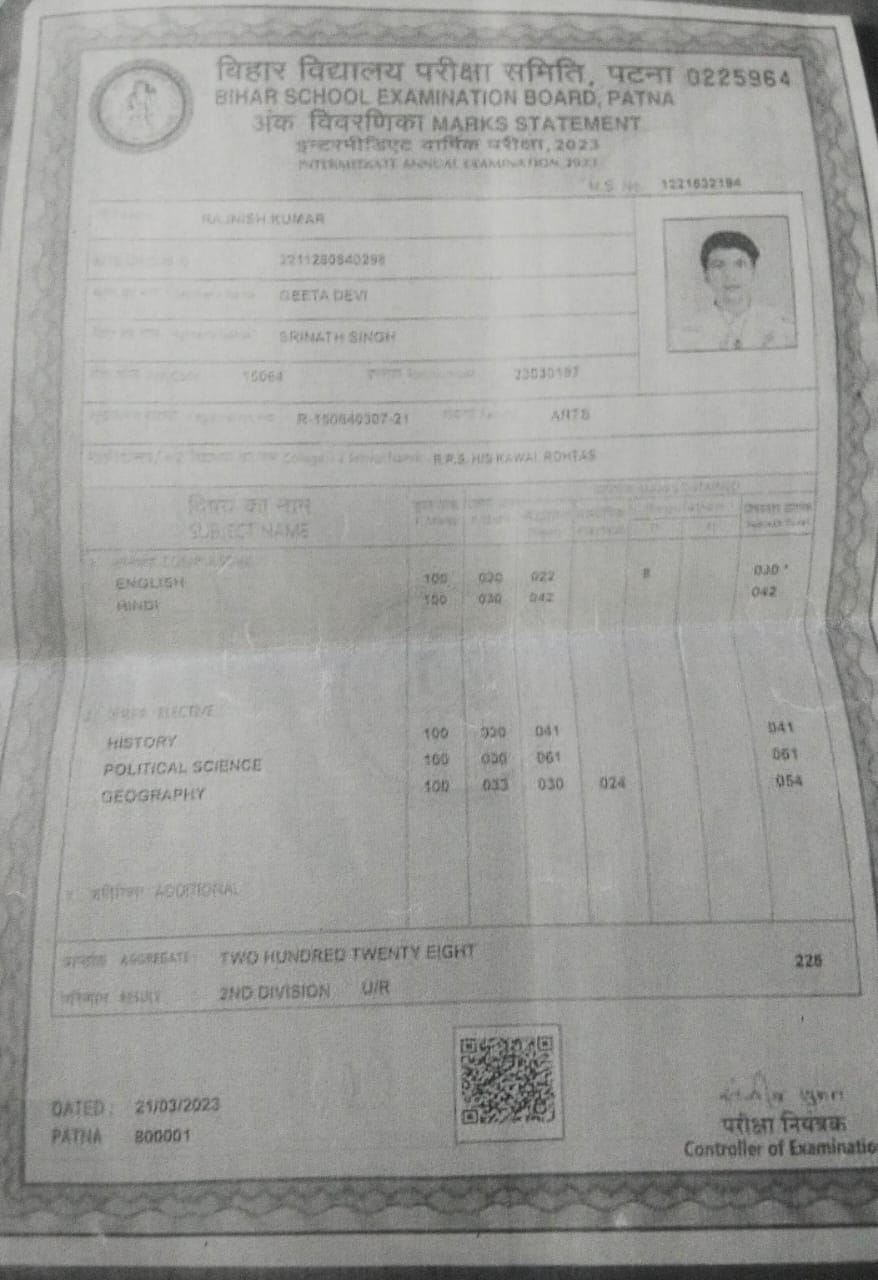 | Exam | Full Marks | Pass Marks | Marks Obtained |