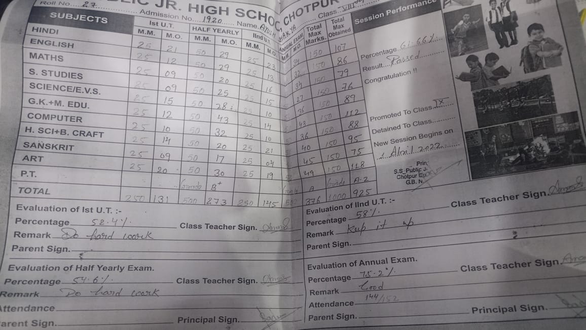 | Exam | Full Marks | Pass Marks | Marks Obtained |