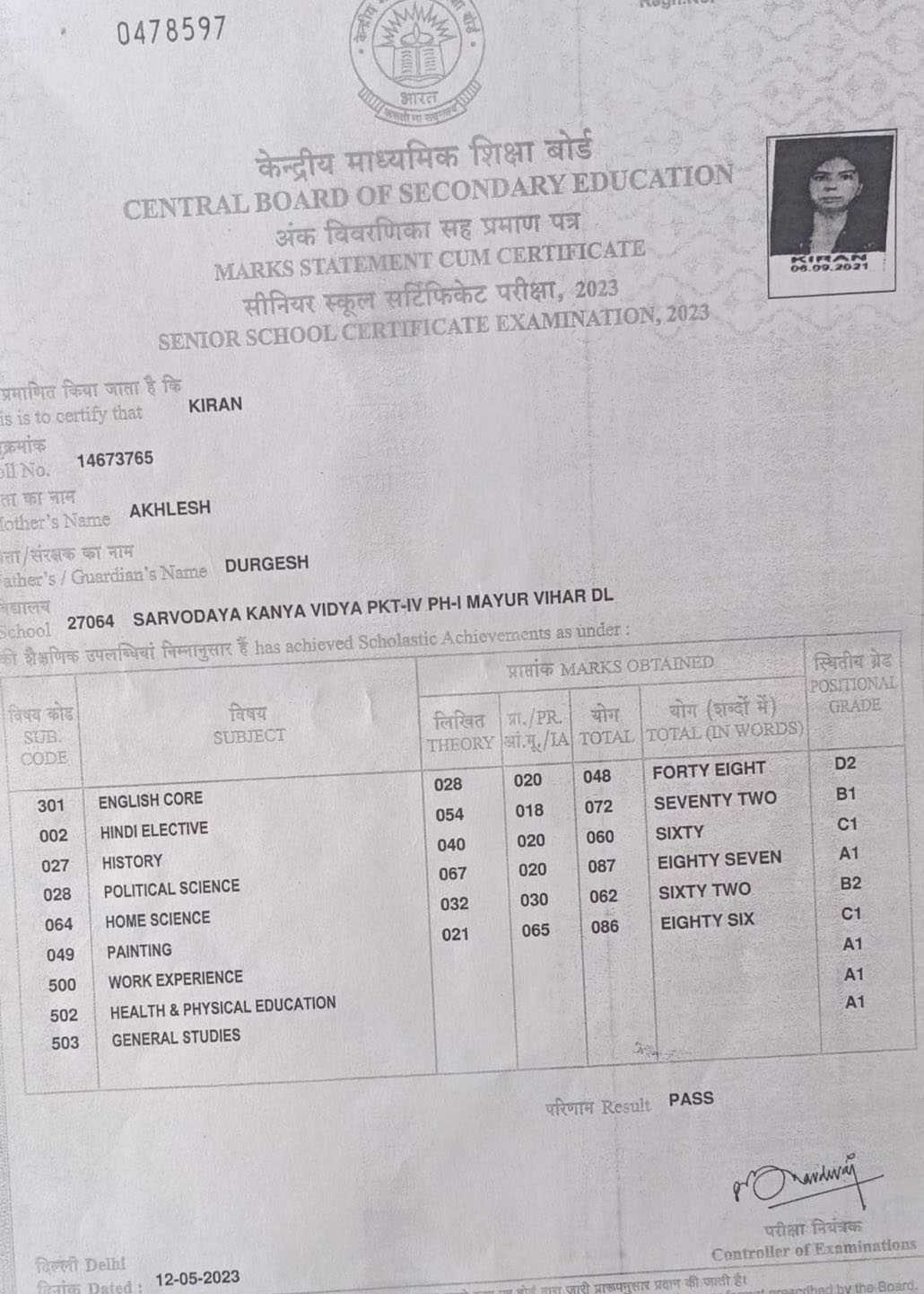 | Exam | Full Marks | Pass Marks | Marks Obtained |